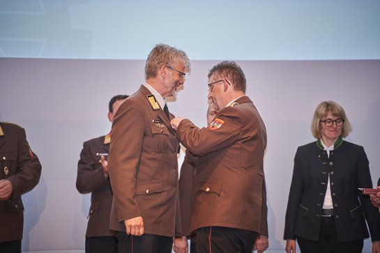 Als Dank und hohe Anerkennung erhält für engagiertes, langjähriges Wirken in Führungspositionen auf Feuerwehrebene oder im Abschnitts bzw. Bezirksfeuerwehrkommando die Ehrenmedaille des Bezirkes Ried